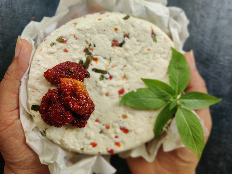 This paneer satisfies our european cravings with our own desi cheese. Made with very fine quality sundried tomatoes and dried herbs, it is a burst of amazing flavours. A delight to have on your party cheeseboards or as grilled snack served with dips and sauces, or a meal to be enjoyed with anything.